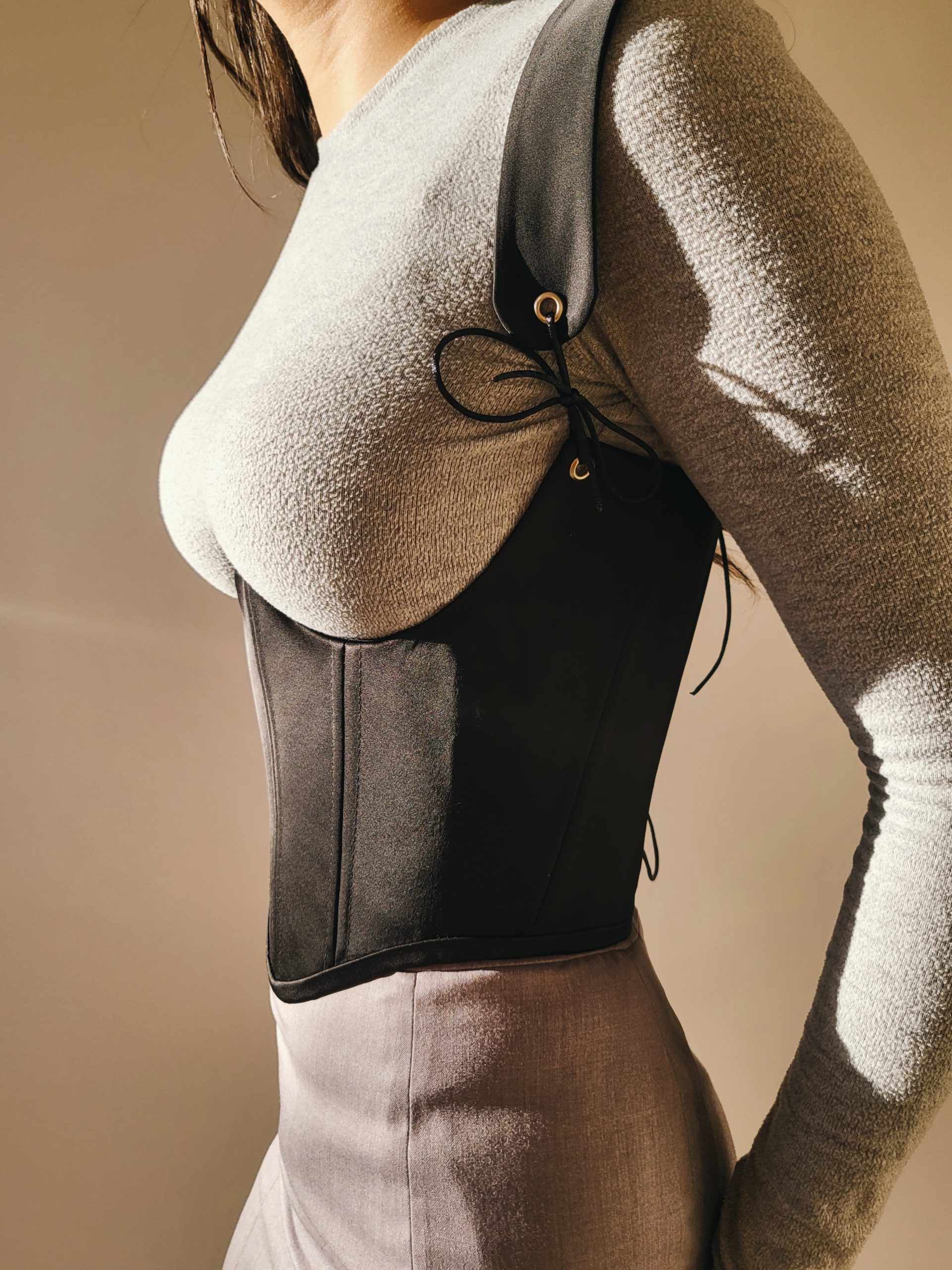 Idéal pour compléter une tenue de manière originale, ce corset peut être porté au-dessus d’un haut près du corps, comme sur la photo, pour un look moderne et audacieux, ou directement sur la peau pour un style plus classique et sensuel. Il se marie aussi bien avec une jupe crayon qu’avec un pantalon taille haute, permettant à chacune de créer une multitude de looks selon ses envies.